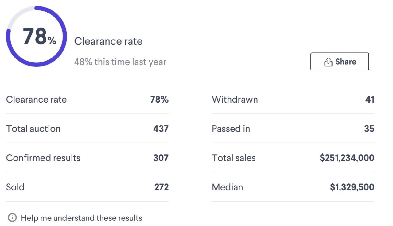 本周悉尼共有437套房屋参与拍卖,清空率高达78%。