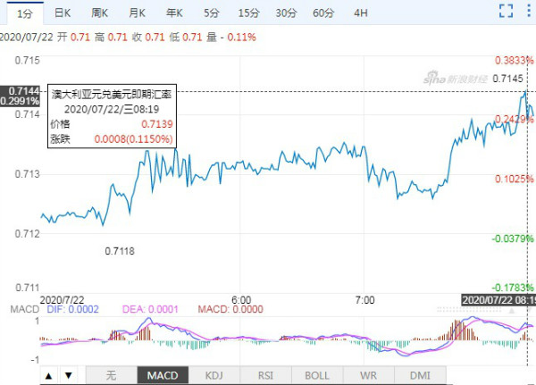 一夜之间,澳元涨幅达到1.7%,近一周来上涨2.24%!