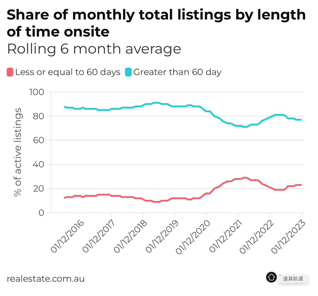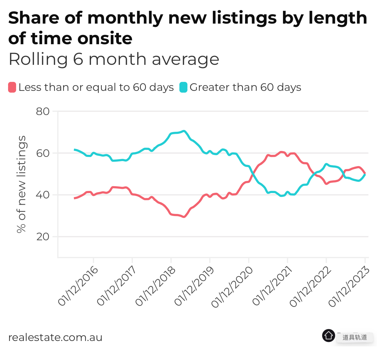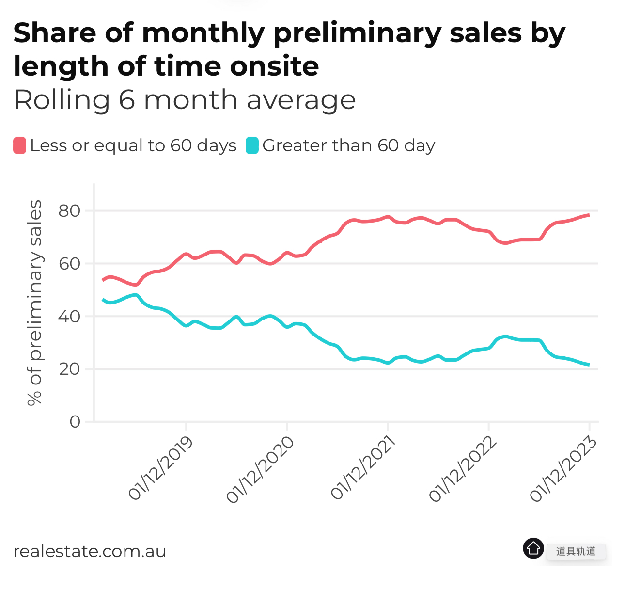 大多数新上市销售发生在60天内,目前只有五分之一的销售时间超过60天。
