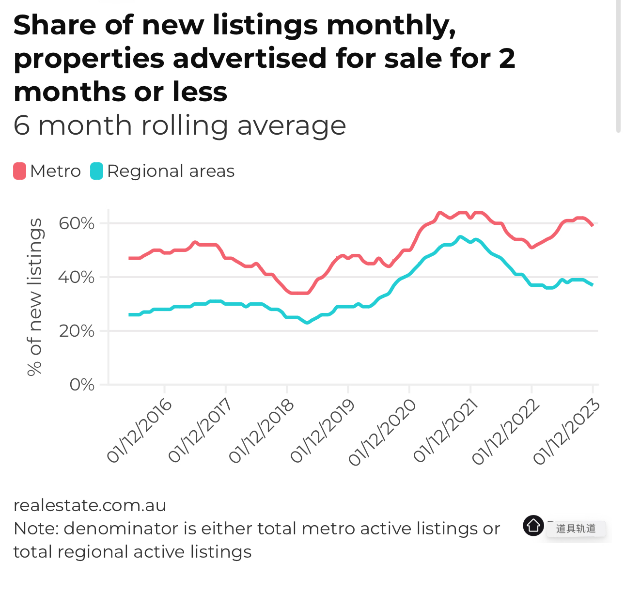 2023年,60天或更短时间的区域上市徘徊在38%左右;然而,自2023年1月以来,地铁上市继续增加,去年平均为58%。