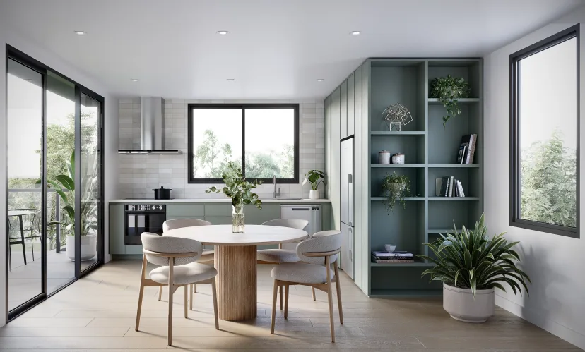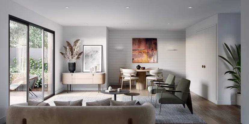 位于 Jean Street 的八栋由建筑师设计的联排别墅中,只有几栋仍在通过 Noorden 营销代理 David Lamond 出售。他看到当地的升级者和降级者都购买了该项目,因为其低维护设计但面积适合家庭居住,并且靠近 Southpoint 车站和 Westfield Southland。