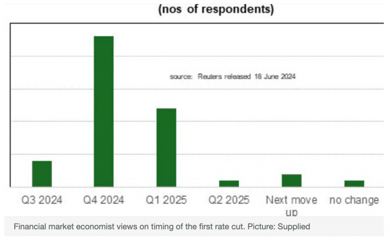 毕马威(KPMG)首席经济学家雷思博士(Dr. Brendan Rynne)则仍然预测首次降息可能发生在今年11月或12月左右。