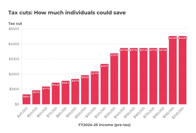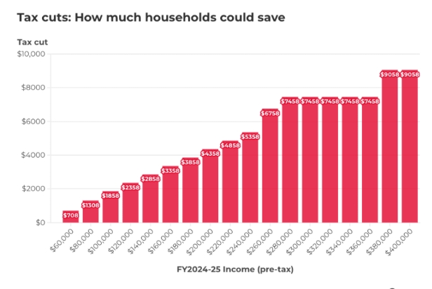 年收入 50,000 澳元的人可以节省 929 澳元,而年收入 200,000 澳元的高收入者可以节省 4529 澳元。
