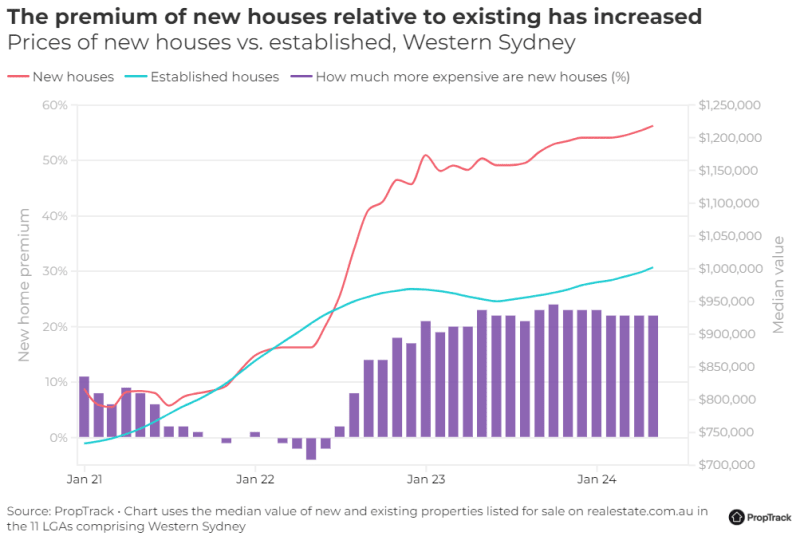 目前,西悉尼新房的平均售价比现有待售房屋高出 21%。
