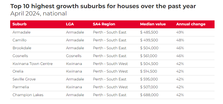 珀斯是过去一年来表现最强劲的澳大利亚房地产市场。因此,珀斯郊区占据了房价年度涨幅最大的郊区也就不足为奇了。