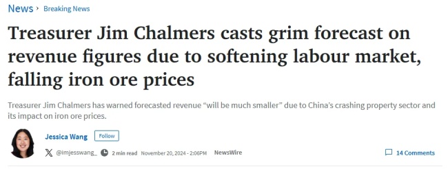 财长公开承认:因为中国,澳洲收入暴跌