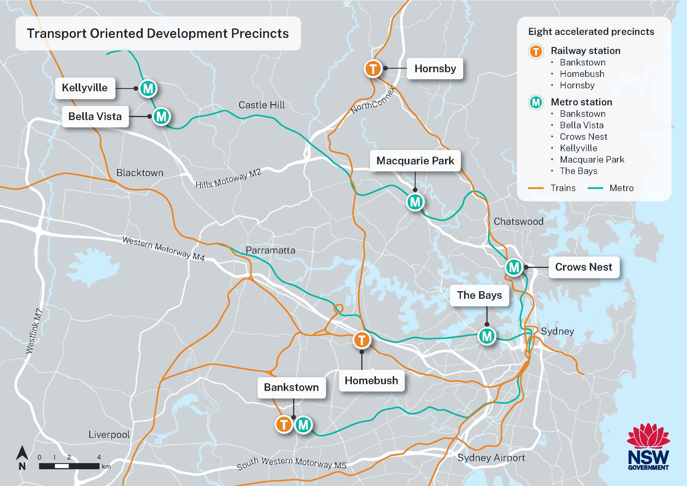新州政府标志性的交通导向型发展 (TOD) 政策的总体规划显示,六个“加速”区域将有能力提供近 60,000 套住房,而超过 5 亿澳元将用于树木、公园和社区设施。