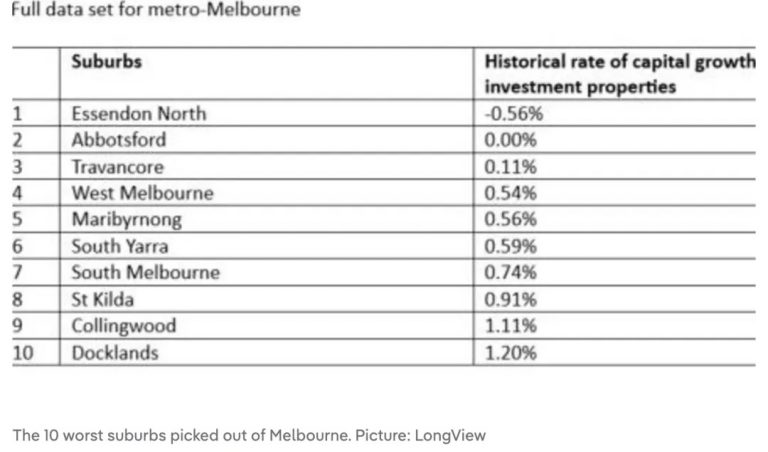 在墨尔本,受冲击最严重的城区是热门的Essendon North,投资房产的资本增长率下跌了0.56%。紧随其后的是Abbotsford和悉尼的OlympicPark,两地的增长率均为0%。