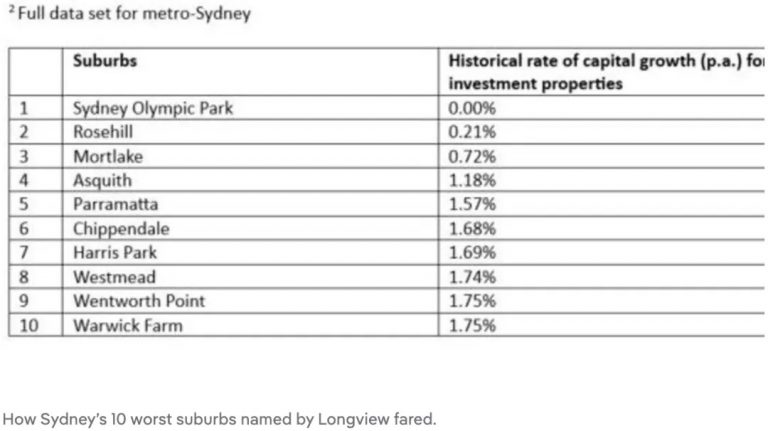 悉尼最差投资回报率则不超过1.75%,其中排名靠后的城区包括:
