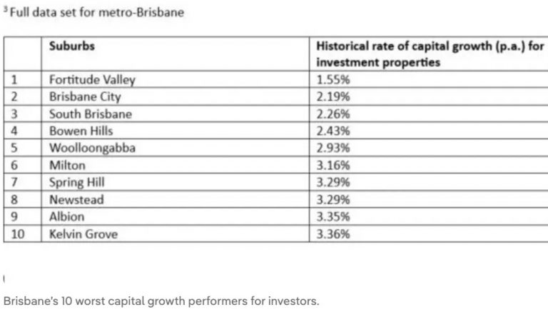 尽管布里斯班的房产投资表现稍好,但一些城区的资本增长率仍远低于昆士兰首府的平均水平。受影响最大的城区集中在市中心,包括: