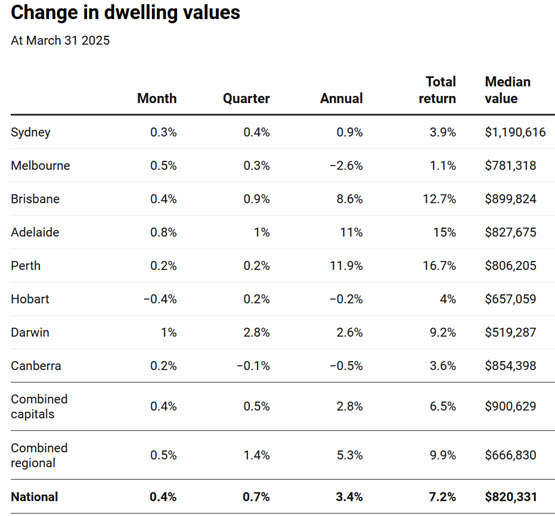 根据CoreLogic的房屋价值指数,在连续三个月下跌0.5%之后,全国房价在2月份出现小幅上涨,3月份又上涨了0.4%。