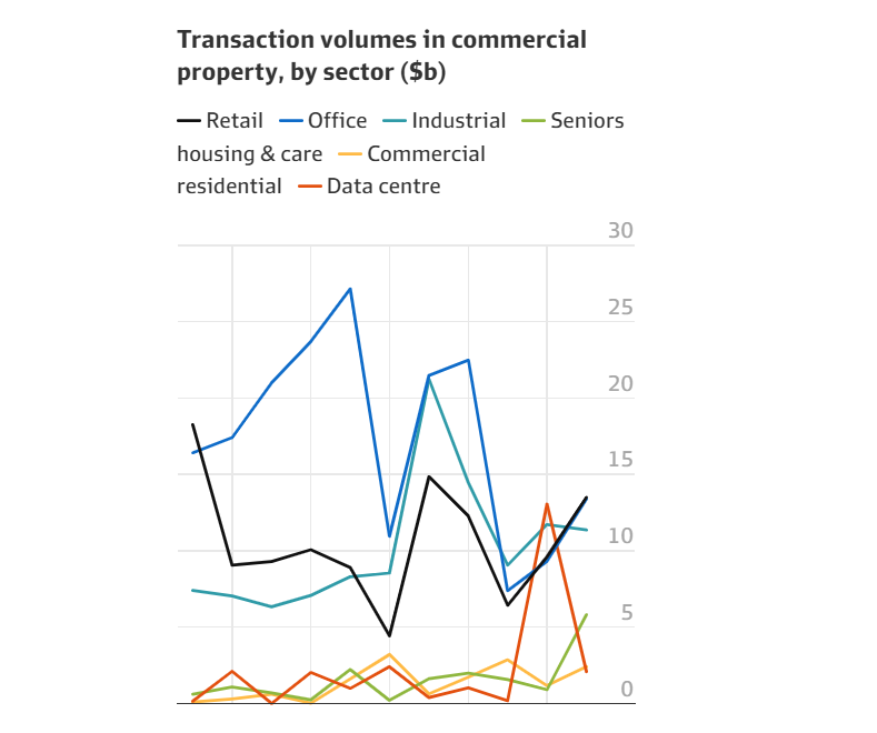 “尤其是办公室受益于流动性提升和价格透明,但零售业表现突出,交易量达到135亿美元,较去年增长41%,是自2021年以来最强劲的一年。”