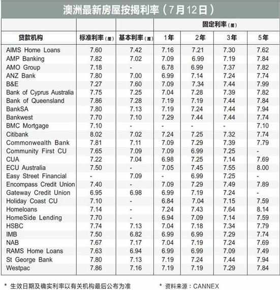 澳洲最新房屋按揭得率表