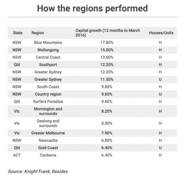 从过去的12月到2016年第一个季度,大悉尼地区的房产增长了12.2%,而蓝山山脉地区的涨幅已经飞升至17.8%,中央海岸和卧龙岗的涨幅分别也达到了15%和13.6%。