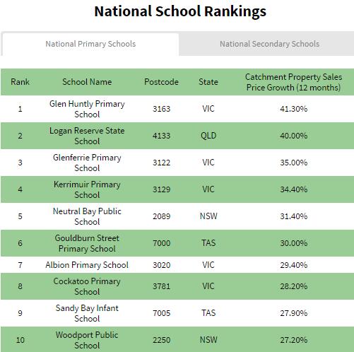 过去12个月,全澳房价升值最快的校区前十位
