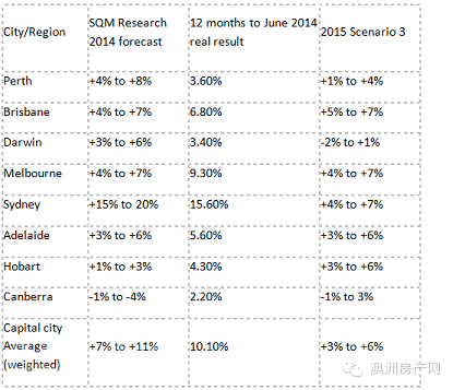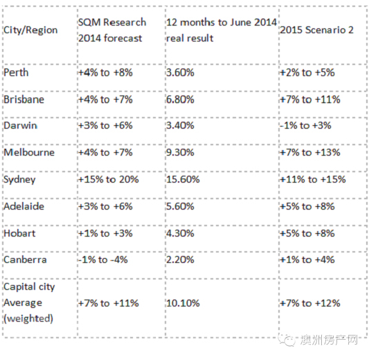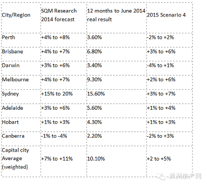 注:截至2014年6月的12个月数据来自澳洲统计局(ABS)Cat6416;2014年的预测数字来自于SQM调查2013年9月房地产市场繁荣与萧条报告。