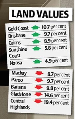 今年,从市政府的区域报告显示,昆士兰州约四分之三的物业已被重新评估开发,其中昆州东南部地区的土地价值上涨幅度最为强劲。其中,黄金海岸的土地价值增长率为10.7%,排名第一;布里斯班为9.7%和凯恩斯为8.9%分别排名第二和第三。