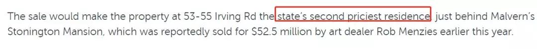 这个价格不仅再次刷新了Toorak区的房价纪录,