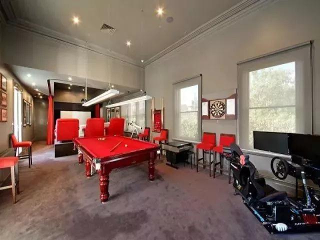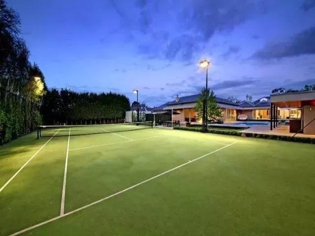 另外还有单独的健身房、台球室、自动清洁的游泳池、spa和私人网球场。