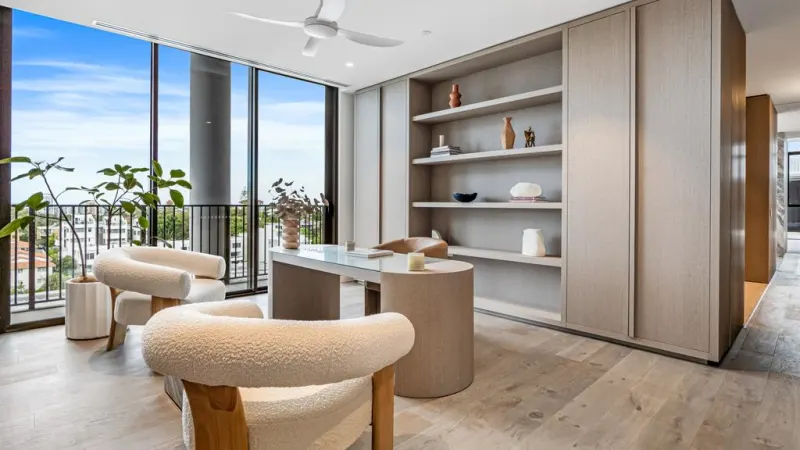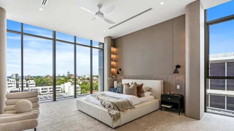 这套占据整层楼的公寓被誉为黄金海岸南部同类公寓中最豪华的公寓之一,位于刚刚竣工的艾默生大厦 (Emerson Tower) 之上,该大厦由墨尔本开发商 Hirsch 和 Faigen 开发。