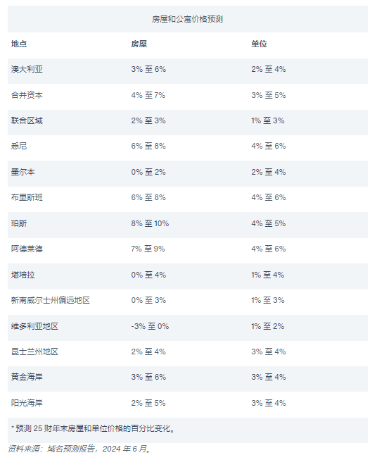 综合各首府城市来看,房价预计上涨 4% 至 7%,而公寓价格预计上涨 3% 至 5%。