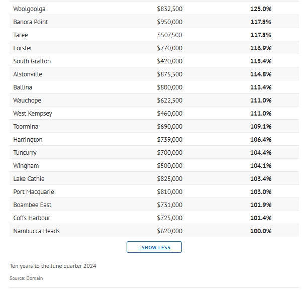 数据显示,拜伦湾表现突出,但特威德郡、拜伦郡和整个北海岸的其他几个地区也蓬勃发展。