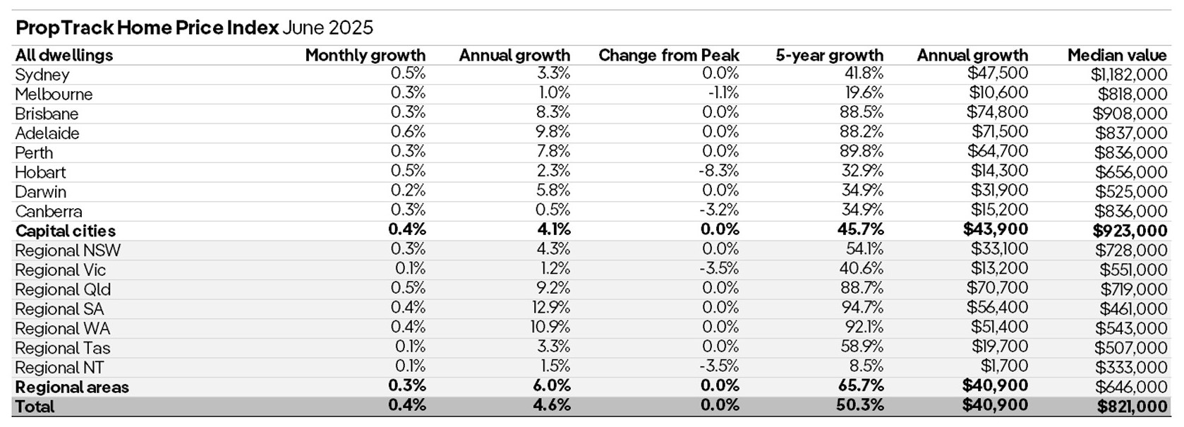 “首都城市市场引领上涨,继阿德莱德、布里斯班和珀斯在 2024 年表现优异之后,6 月份所有城市的房价均出现增长。