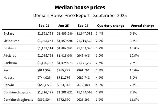 根据Domain发布的九月季度《房价报告》,全国八个首府城市的房价均再次录得季度涨幅,悉尼和墨尔本在这波涨势中起到了领头作用。