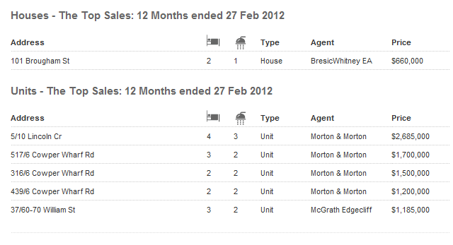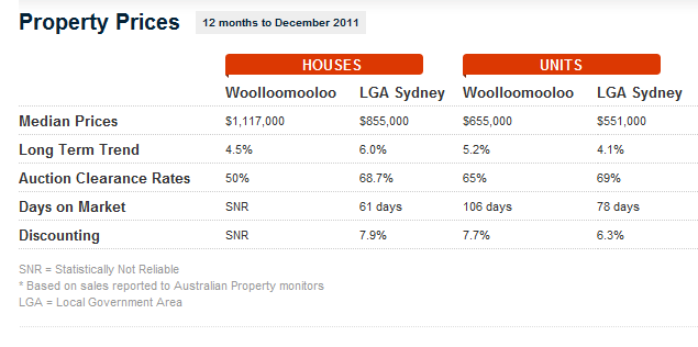 如下是Woolloomooloo的中价位图: