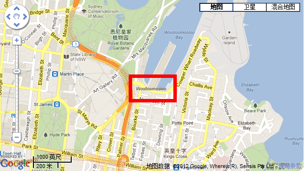 Woolloomooloo在悉尼的位置图: