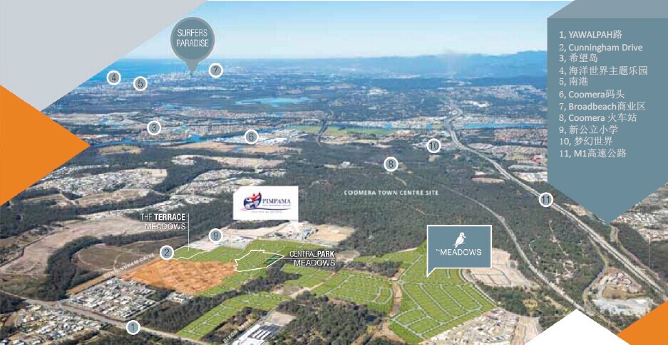 The Meadows位于黄金海岸Pimpama区,此处黄金海岸与布里斯班中心位置,交通十分便利: