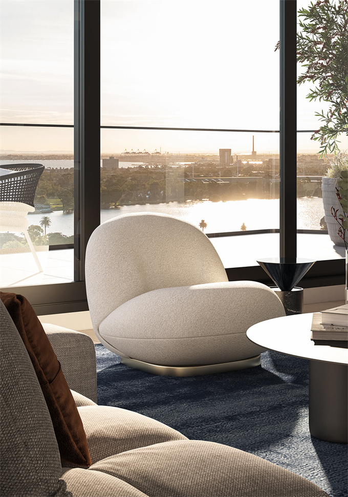 装饰艺术的魅力与 21 世纪城市生活的情趣相碰撞,采用高品质、触感极佳的材料。开放式公寓自然采光充足,视野开阔,可欣赏周围的公园、城市和波光粼粼的水景。