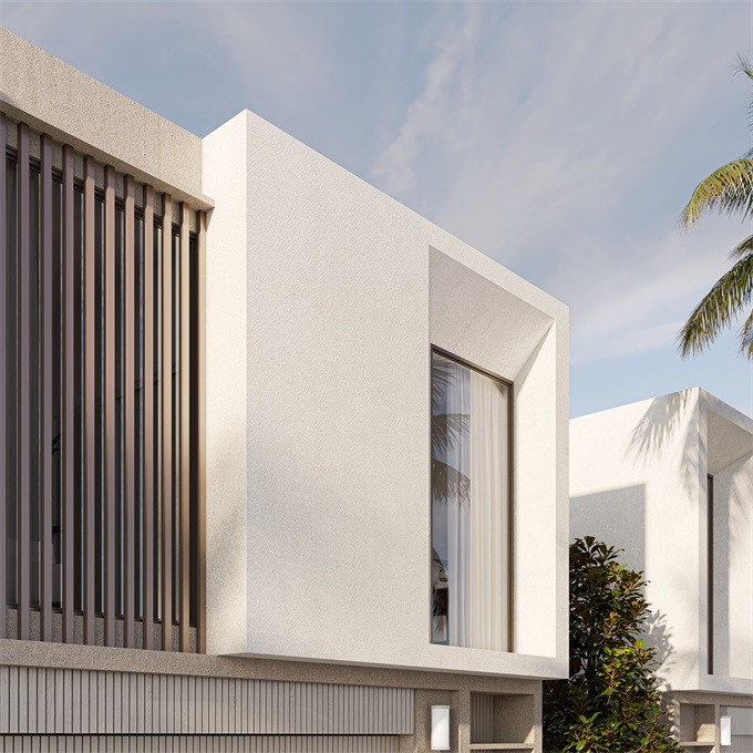 别墅外墙由当代国际建筑公司 Plus Architecture 设计,采用了多种纹理和饰面。从青铜装饰到铝制细节,从反光玻璃到石材包层、木板和彩绘垂直凹槽镶板,每一种都经过精心挑选和精心布置,以适应不同的环境和街景。