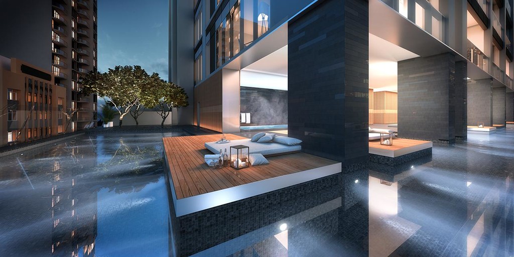 项目底层为双层挑高的住宅大堂,与五星级酒店大堂相邻相承,项目的9层及10层为住宅专属会所,拥有30米泳池、健身房、桑拿、会议室、阅读室、电影院等。(居住者可以免费使用会所设施)
