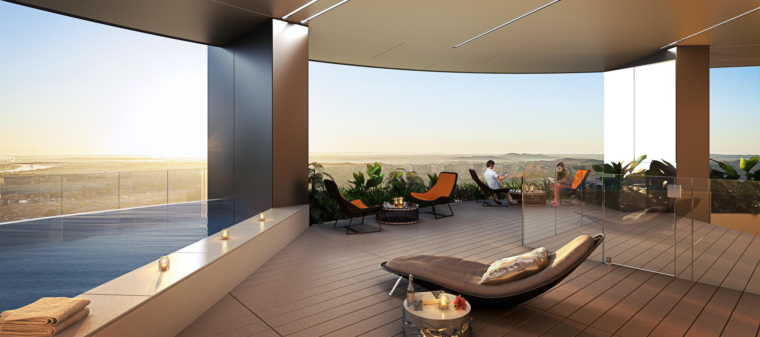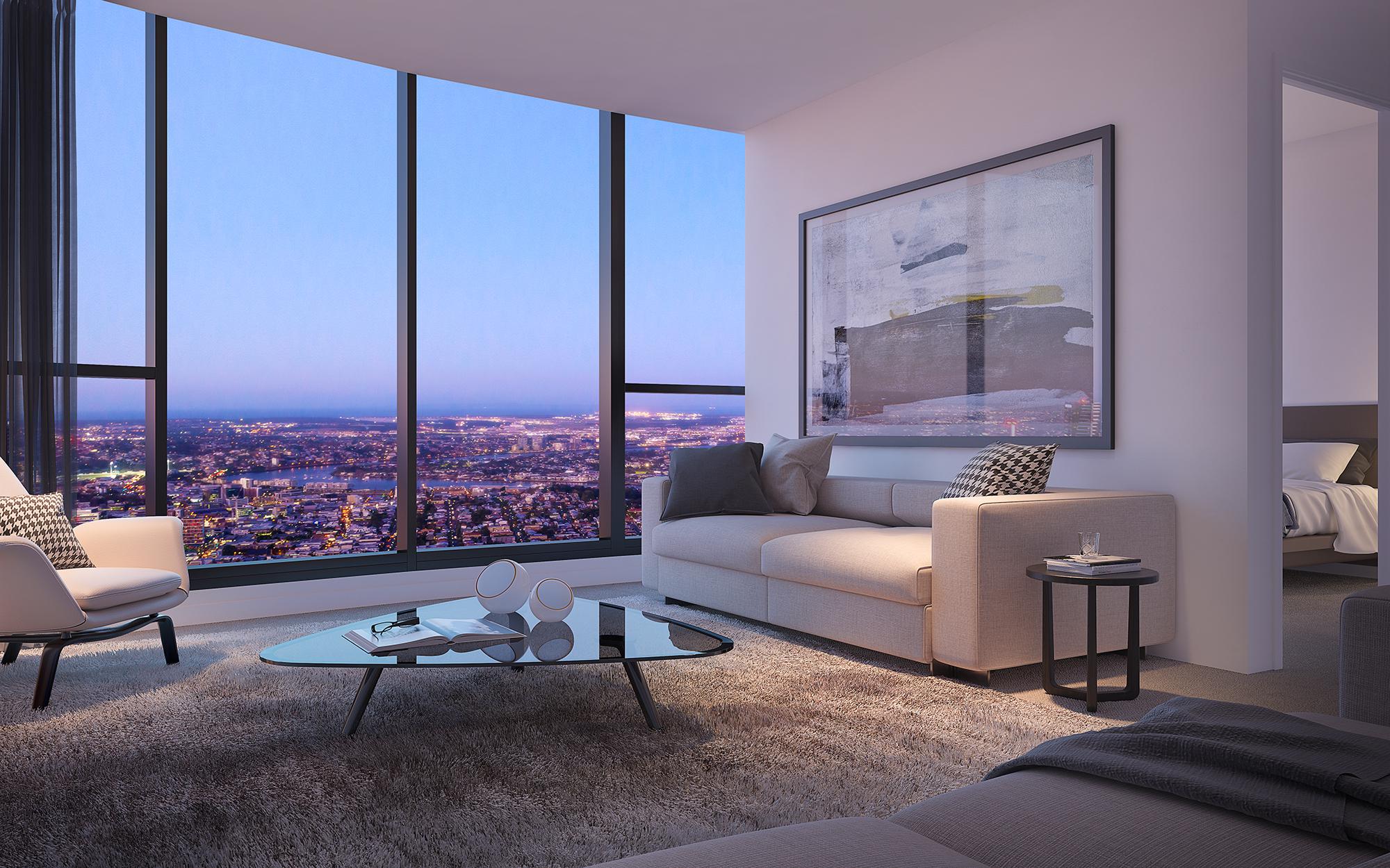 位于巨塔顶端的顶级阁楼套间拥有整个建筑中 最为奢华的一房、二房和三房公寓。贴近城市 的天空,拥有无与伦比的奢华生活享受。 落地式玻璃幕墙,结合前所未有的三角形精雕 建筑设计,开辟了广角式,无与伦比的全方位 景观。 本案耸立天际的高度,带来超乎想象的宽阔 视野。俯窗鸟瞰,摩顿湾(Moreton Bay)、 斯特拉布鲁克岛(Stradbroke Island)、甚至 黄金海岸(Gold Coast)和大分水岭(Great Dividing Range)都尽收眼底。 客厅提供了高度的流动感和空间感,将看似无 限的景色引纳入公寓。 无论是低楼层的宽广阳台还是高楼层的阳光暖 房,都会将您的住所和外部的广阔空间天衣无 缝的融合在一起。天际塔独特的设计完美优化 采光,通风以及景观,使其成为城市顶尖居住 的不二之选。推开门,足不出户,窗外奇绝美景尽收眼 底。无论您是享受居家的静谧,还是宴待宾 朋,这奢华的背景都让您尊贵的寓所倍添情 致与华彩。布利斯班天际塔在建筑设计上堪称一座集优雅 与大气于一体,真正宏伟的摩天大楼。 全景玻璃幕墙,由极致豪华的休闲观景平台自 然分割,直指天际,俯瞰市中心植物园和布利 斯班蜿蜒的河流。 在天际塔的脚下,是市中心一个闹中取静的三 面环水的滨河花园。布利斯班天际塔将内城区 的繁华与自然景观完美结合。 凭借其宏伟的气势和广阔的美景,这个标志 性的摩天大楼将组成布利斯班市中心全新的 天际线。