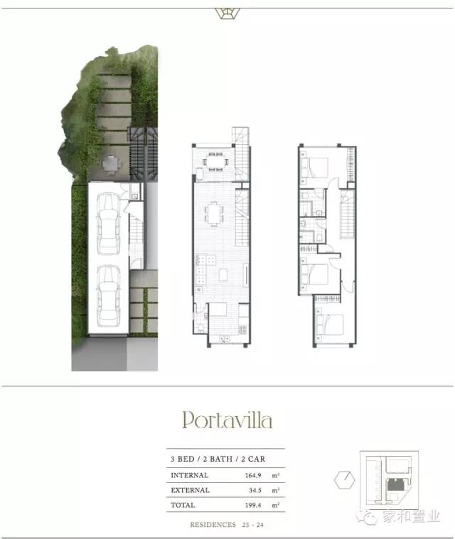 • 共24套三房别墅,均楼高三层,每套别墅都配有两个车位;