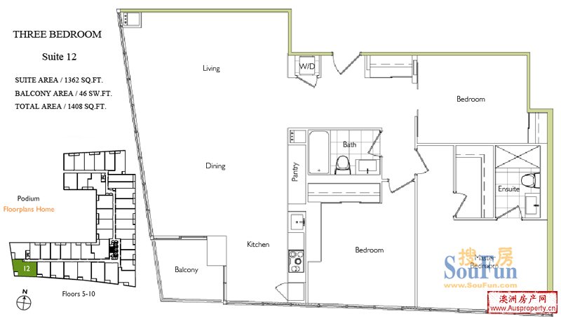 柏离豪宅Parade suite12户型图 3室1厅1厨2卫