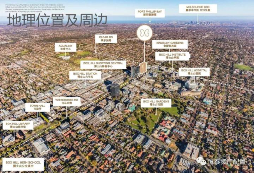 项目位于墨尔本最繁华的华人区BoxHill中心位置(项目地址826-834 Whitehorse Road,Box Hill,Melbourne VIC 3128),周边购物中心、公园、医院等生活设施应有尽有,BoxHill中心商业区包揽各种大型超市、银行、餐饮等,步行8分钟即可到达各大生活场所。