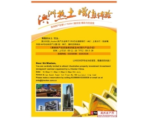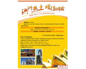 7月9号霍克佳L J Hooker澳洲房产投资沙龙 日期:2011-06-28 14:11:13 点击:245 好评:0