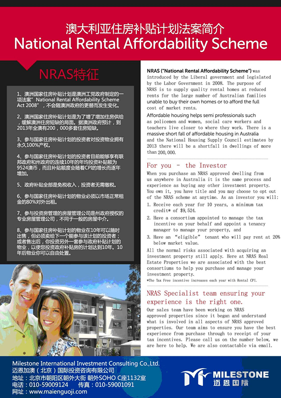 NRAS国家住房补贴计划澳大利亚官方网址: