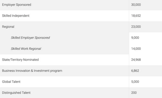 从配额上来看,2019-2020财政年澳洲政府依旧把重心放在独立技术移民类别上。
