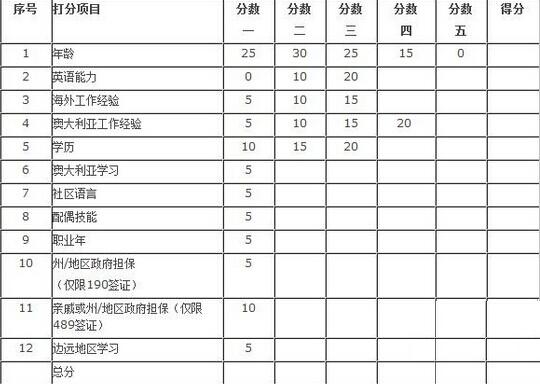 备注:海外工作经验和澳大利亚工作经验的累计加分最多为20分。