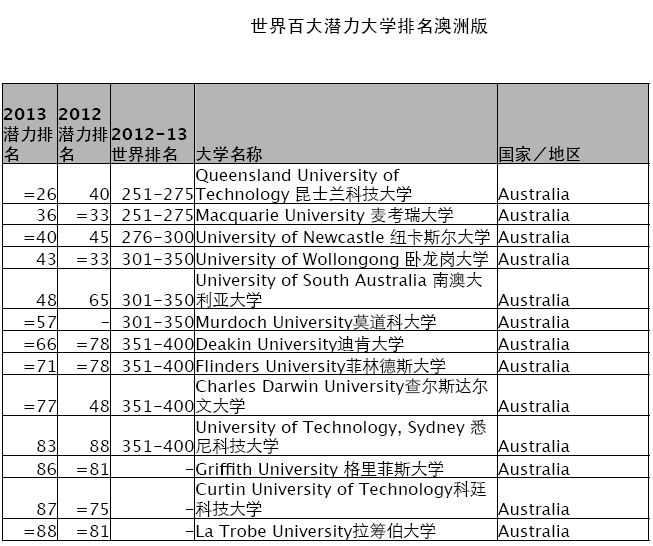 昆州“为真实世界而立”的大学—昆州科技大学(QUT)2013年再次入选“世界百大潜力大学排行榜”,并且名次高居13所澳洲入选大学之首。