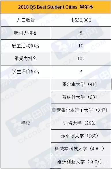 著名排名机构QS 上周公布了Best Student Cities 2018,选出了世界上适合求学的100所城市排名,其中澳洲城市表现亮眼,7所城市上榜: