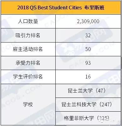 可以看出布里斯班在学生评价方面排名不错,很多小伙伴都觉得布里斯班悠闲的生活、友好的居民、方便的公共交通系统值得称赞。