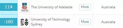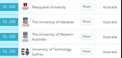 麦考瑞大学,阿德莱德大学,西澳大学,悉尼科技大学,也杀进了世界前100。