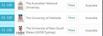 澳国立大学、阿德莱德大学、南威尔士大学也进入前100。