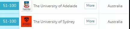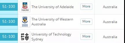 其中挺进前100的还有阿德莱德大学、西澳大学、悉尼科技大学。