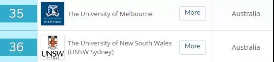 两所大学进入世界前50,分别是墨尔本大学(35),和新南威尔士大学(36)。