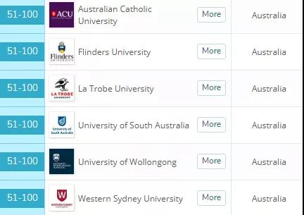 澳大利亚天主教大学、弗林德斯大学、La Trobe大学、南澳大学、卧龙岗大学、西悉尼大学都挤进了世界百强。